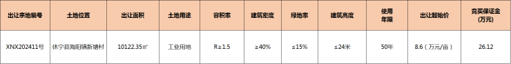 休宁县1宗工业用地挂牌出让