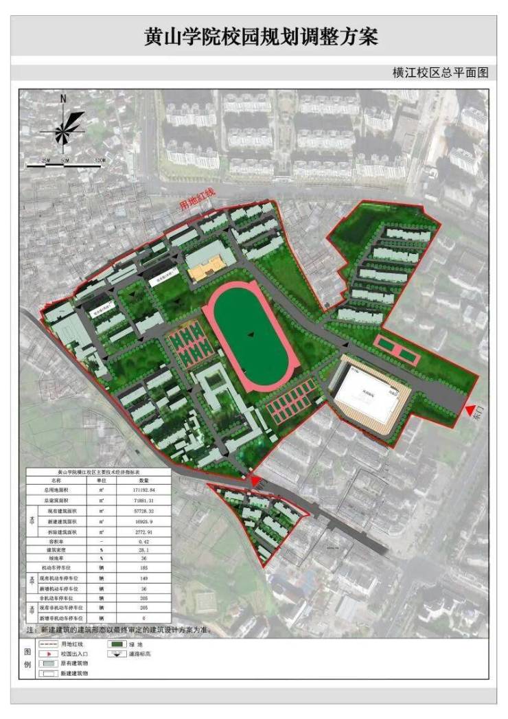 黄山学院为省属综合性普通本科高校,含率水、横江两个校区,为满足招生规模相关配套需求,有效指导校园未来发展建设,黄山学院结合原有校园规划及实际建成情况,拟对校园总体规划进行修编调整。经审查,调整后的校园规划各项技术经济指标(详见公示图)满足相关建设标准及规范要求。根据有关规定,现将调整后校园规划总平面图予以公示,如有意见和建议,请在公示期内向我局反馈。
