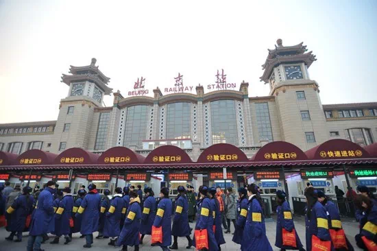 1999年,北京站春运排名前列个高峰日2月7日,上下车旅客达13万人。由于旅游人数猛增,北京铁路公安部门抽调300多位民警维持秩序,确保春运井然有序。