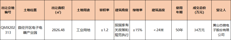 祁门县1宗工业用地出让