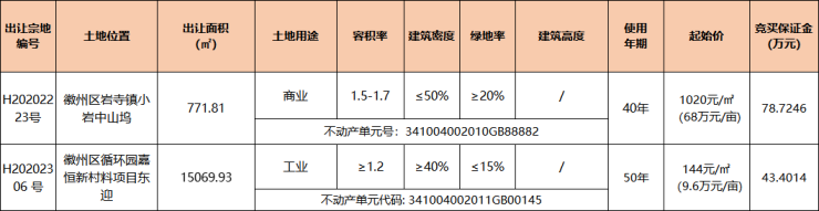 徽州区1宗商业,1宗工业用地挂牌出让