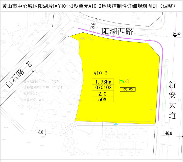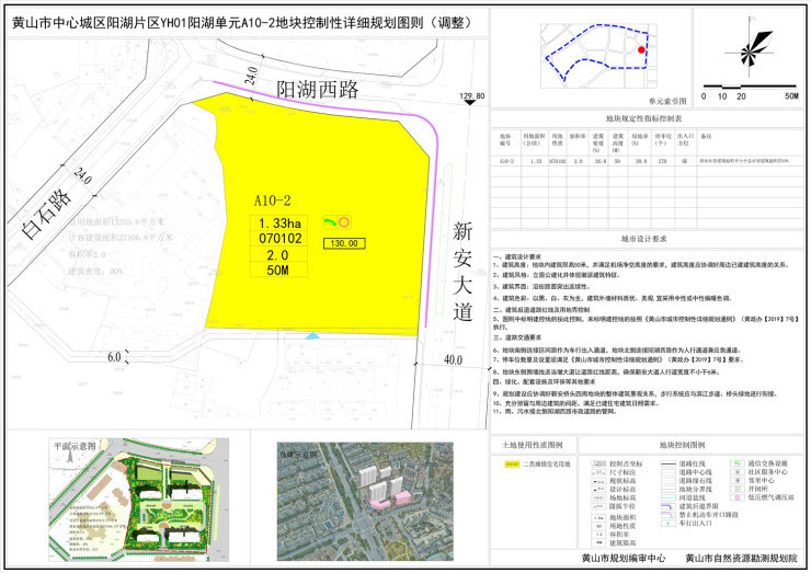 黄山市中心城区阳湖单元A10-2地块控制性详细规划图则已于2021年8月6日进行调整公示