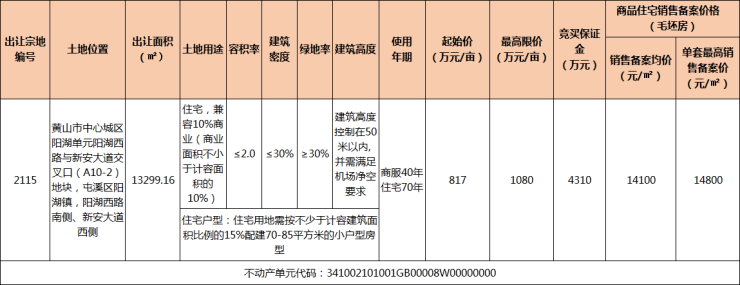 2021年12月29日下午,黄山中心城区阳湖A10-2地块(宗地编号:2115),拍卖仪式在黄山市公共资源交易中心举行。