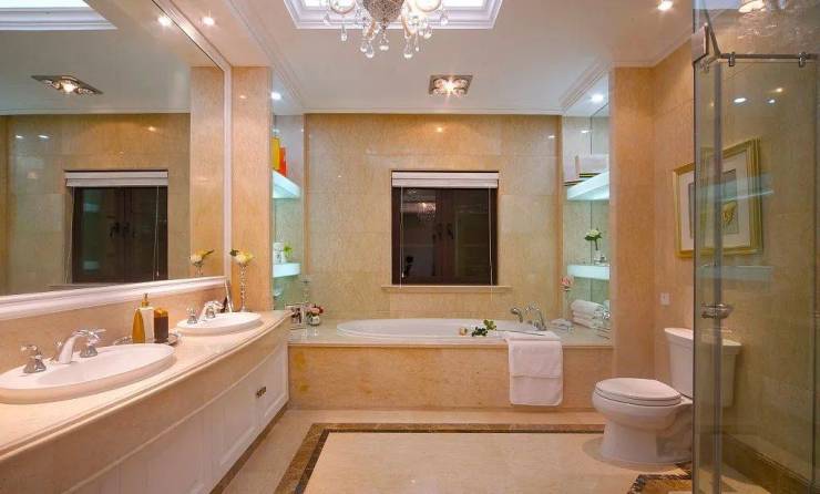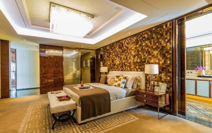 主卧套房,臻享约3.6m奢华面宽尺度,可轻松放置2.2m大床配床尾凳,可规划步入式衣帽间,自在盛纳四季衣物。卫浴空间预留淋浴间、浴缸及双台盆空间,男女主人同时洗漱不拥挤。