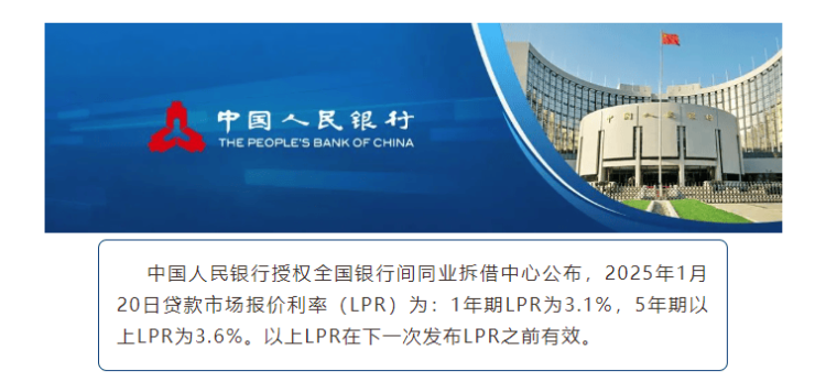 1月20日,中国人民银行授权全国银行间同业拆借中心公布,2025年1月20日贷款市场报价利率(LPR)为:1年期LPR为3.10%,5年期以上LPR为3.60%,均与前期保持一致。以上LPR在下一次发布LPR…
