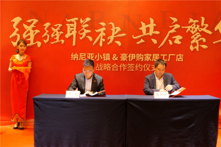 致辞结束后,纳尼亚小镇总经理熊涛和豪伊购家居总经理吴韶辉郑重地签下合作协约,标志着双方美好合作的开始,他们将以强强联袂的姿态,开启黄山商业的繁华。