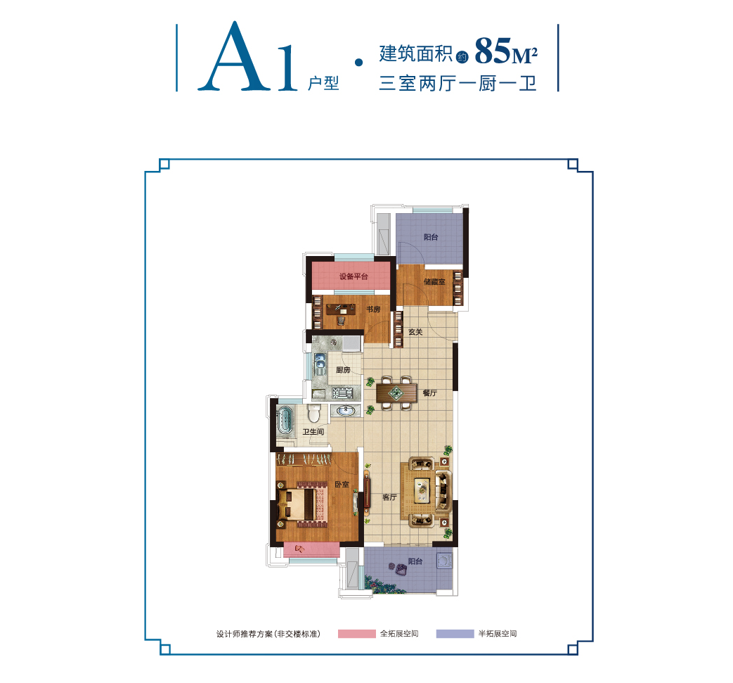 山海天地户型解析 | 85㎡A1全明3室,让生活沐浴阳光