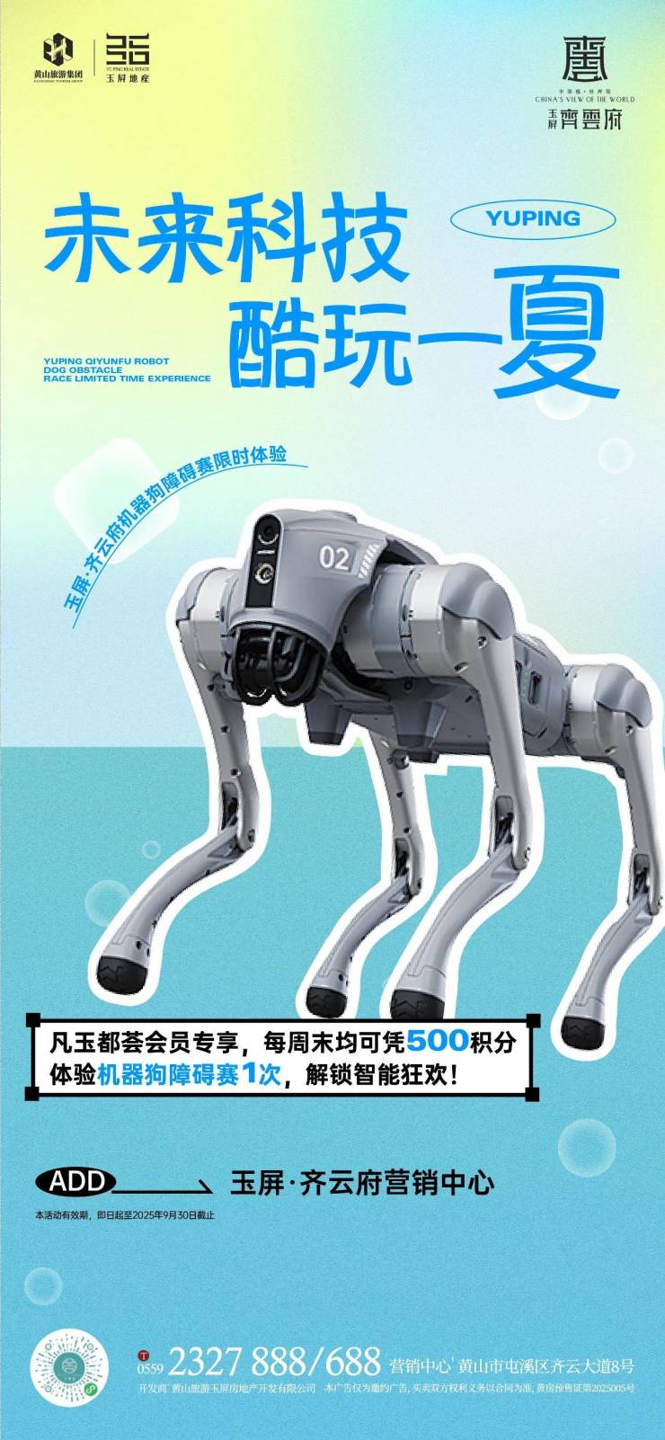 未来科技,酷玩一夏。玉屏齐云府机器狗障碍赛限时体验,凡玉都荟会员专享,每周末均可凭500积分体验机器狗障碍赛1次,解锁智能狂欢!活动时间截止至9月30日。