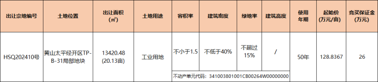 黄山区1宗工业用地挂牌出让