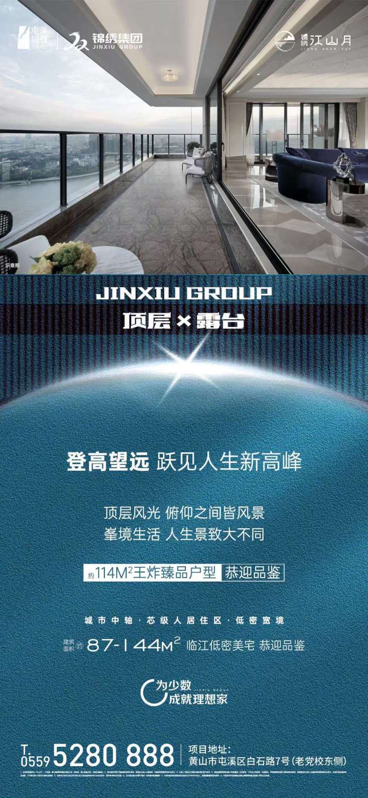 顶层风光,俯仰之间皆风景,峯境生活,人生景致大不同。锦绣江山月4、5、8、9#楼入市热销中,建面约87-144㎡,均价12500元/㎡。