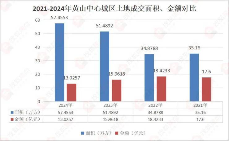 2024年,黄山中心城区挂牌22宗地块,成交21宗,成交面积达57.4553万平方米,创近四年新高。然而,成交总额仅为13.0257亿元,比2023年的15.9618亿元和2022年的18.4233亿元有较大幅度下降。黄山土地市场表现出“整体规模扩大,结构调整加剧”的特点。
