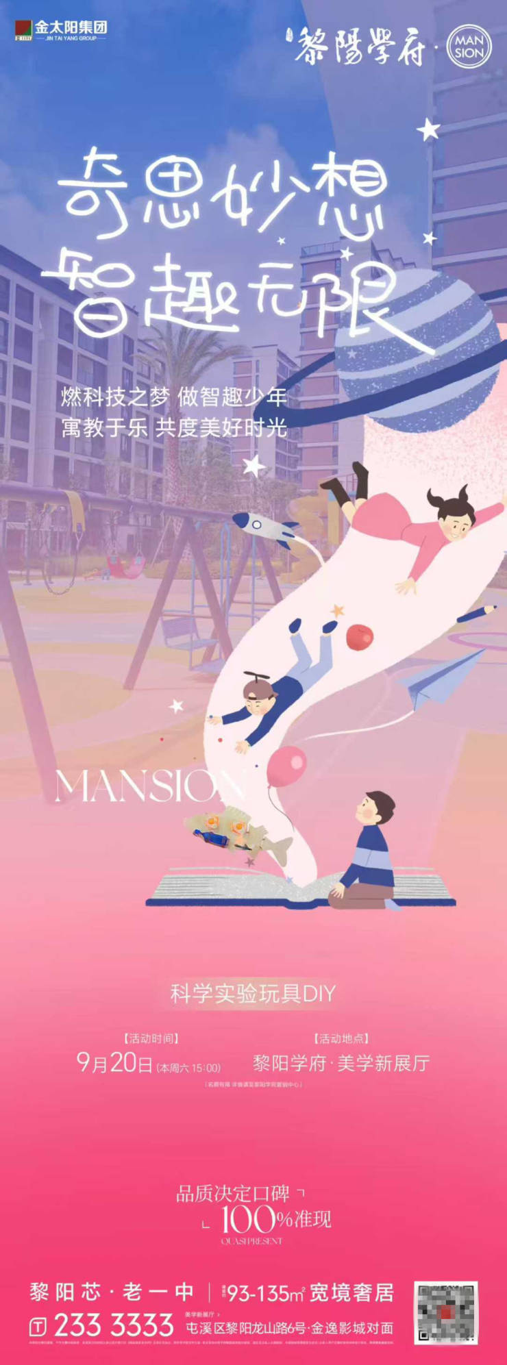 燃科技之梦,做智趣少年。黎阳学府科学玩具DIY,寓教于乐,邀你共度美好时光。活动时间:9月20日(周六15:00);活动地点:黎阳学府美学新展厅。黎阳学府,品质实景现房,一目了然的幸福生活,建面约93-135…