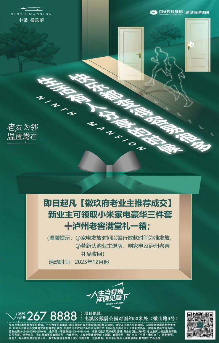 即日起凡【徽玖府老业主推荐成交】,新业主可领取小米家电豪华3️⃣件套➕泸州老窖满堂礼1箱!