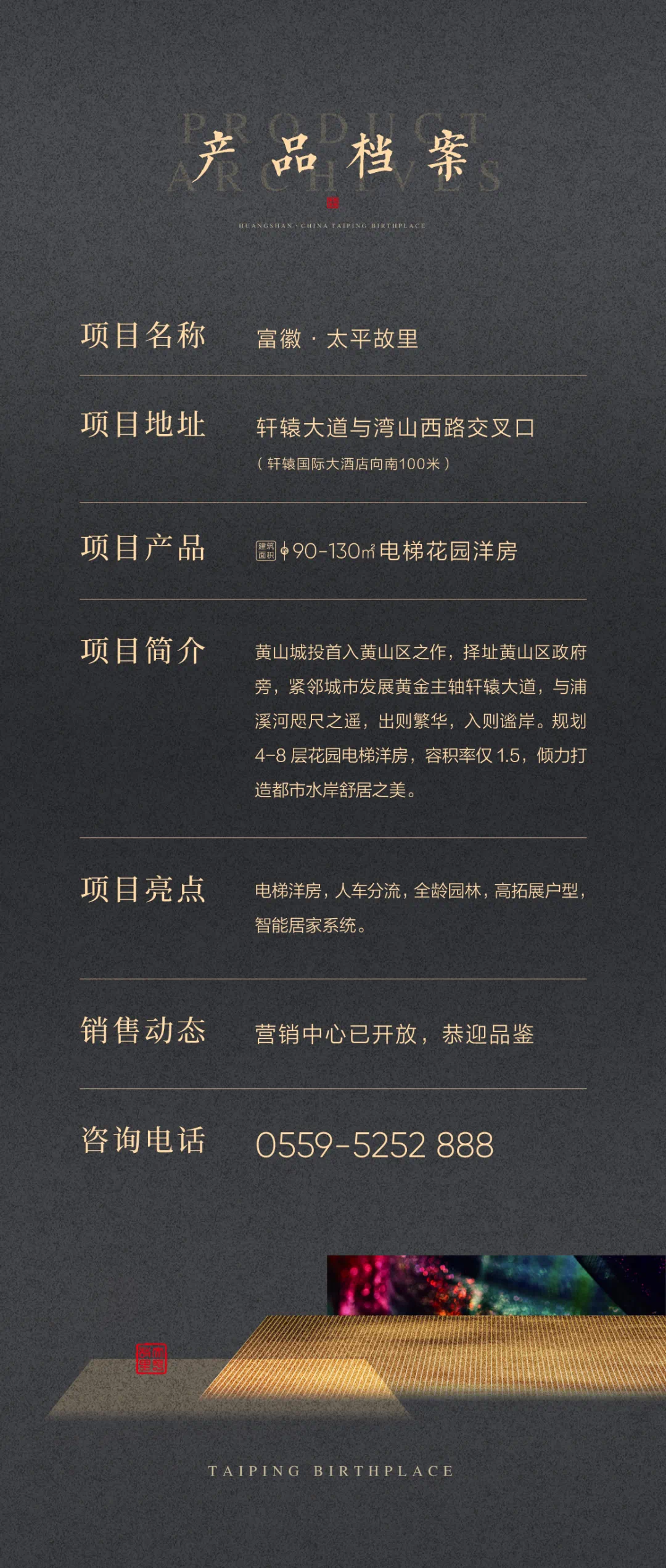 2020年,黄山城投与黄山区相逢,溯源城市历史,以“故里”之名,打造浦溪河畔的都会著品——富徽·太平故里。