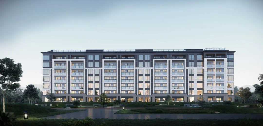 建筑营造从江南传统民居中汲取营造灵感,建筑既沿袭传统审美,又融汇现代质感。典雅三段式设计,底部石材干挂,中间真石漆,徽派坡屋顶,专注整体的同时更精琢细节。大片玻璃幕墙,形成水天呼应、融筑于景的浪漫格调。