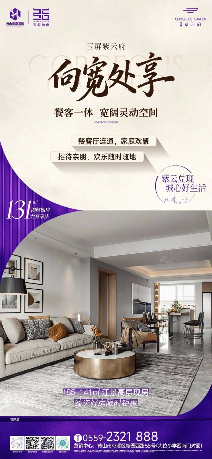 紫云兑现,城心好生活,玉屏紫云府建面约85-141㎡江景高层现房热售中,臻选好房,限时钜惠。