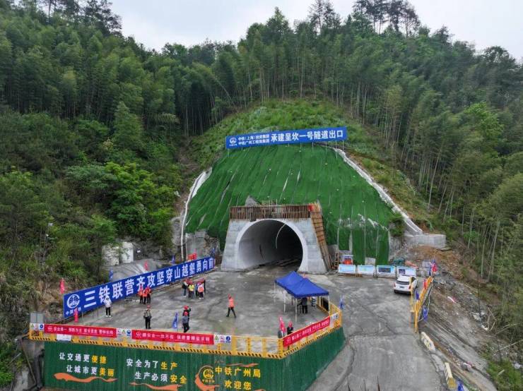 呈坎一号隧道位于徽州区呈坎镇,全长349米,是全线运架梁关键线路上的控制性工程。自2025年10月15日开工以来,建设团队直面安全风险高、工期紧张、作业空间狭小、工序交叉密集等多重考验,不断优化施工方案,强化现场管控,科学调配资源,历经190余天艰苦奋战,安全高效实现隧道贯通。