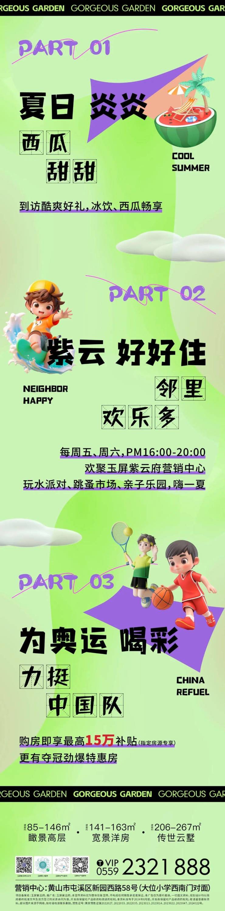 玉屏暑期,酷爽计划。玉屏紫云府暑中作乐,等你来酷爽一夏。玉屏紫云府建面约85-146㎡瞰景高层、建面约141-163㎡宽景洋房、建面约206-267㎡传世云墅热售中!…