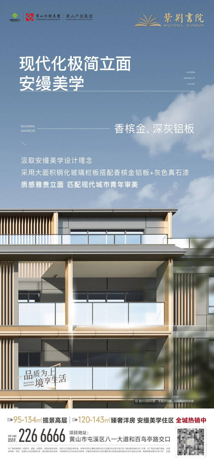 紫荆书院,黄山首个安缦美学住区,建面约95-134㎡揽景高层、建面约120-143㎡臻奢洋房热售中。