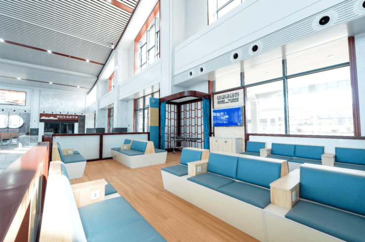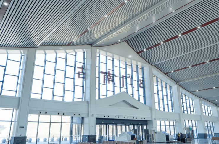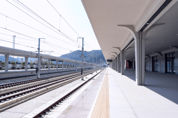作为安徽省的“南大门”祁门南站为线平式站房祁门南站站房以山为媒、以门为形站房整体造型由“门”字形体演变而来结合站房两侧江河涌向阊门的独特环境两杯茶饮涌为门”的建筑语言竖立起的花格砖点缀让人感受到祁门浓厚的茶文…