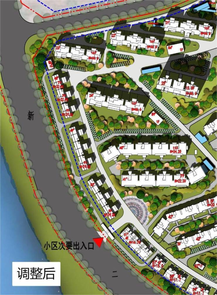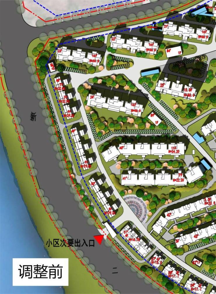 玉屏齐云府项目南大门位于项目六期50#、51#之间,原规划方案为异形形式,为提升大门方案整体效果,同时考虑出入口交通组织等因素,现建设单位申请对南大门方案优化调整。调整后大门方案为矩形形式,经审查,调整后大门方案建筑间距,建筑退让等均满足相关规范要求,根据有关规定,现将调整前后平面图及效果图予以公示,如有意见和建议,请在公示期内向我局反馈。