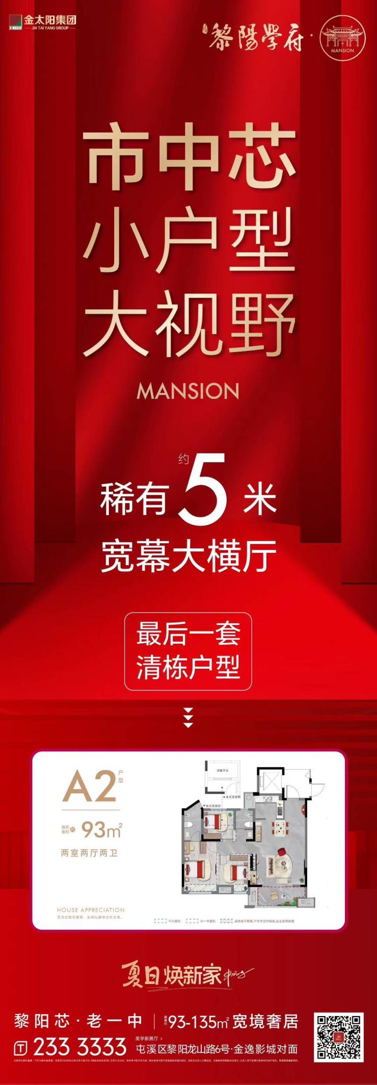 夏日焕新,热销清栋,谁能抢占,最后席位。黎阳学府,小户型大视野,建面约93㎡户型,稀有5米宽幕大横厅,连接阳台,超宽视野,风景尽揽于室。最后一套,错过再无!
