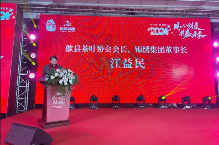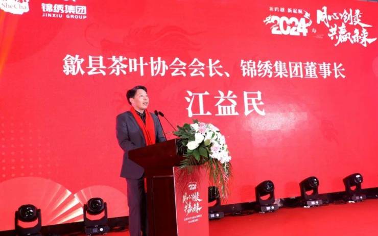 接着,锦绣集团董事长江益民先生做活动祝词,首先江总代表锦绣集团和歙县茶叶协会欢迎社会各界嘉宾的到来,并对歙县县委县政府、县直机关、乡镇政府和各大金融机构以及社会各界朋友对茶协和茶企的大力支持表达了诚挚的感谢。