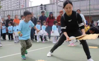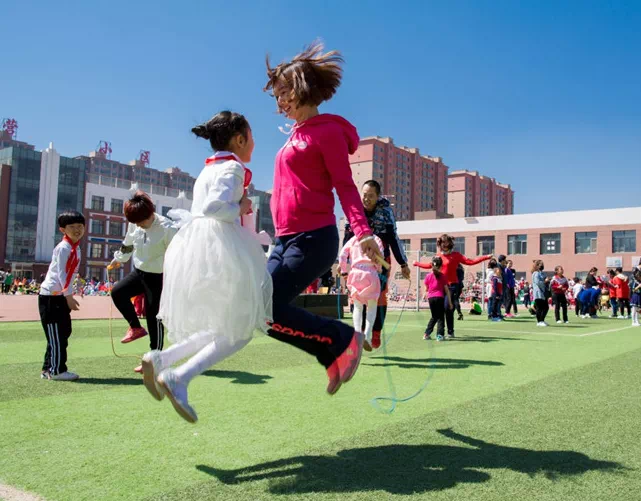 1.家长和孩子面对面站立,家长甩绳,孩子同时起跳。