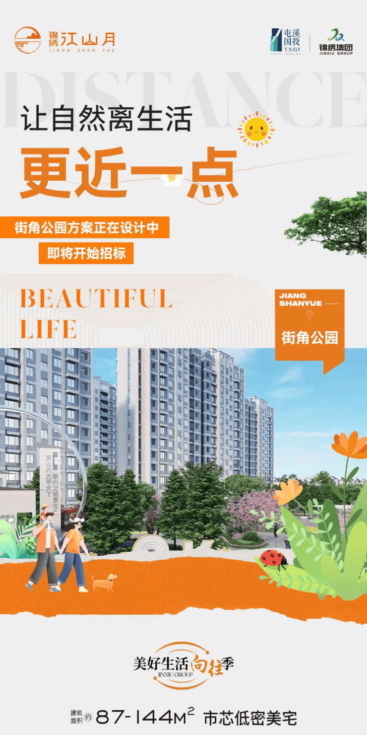 锦绣江山月,美好生活向往季,让自然离生活,更近一点,街角公园方案正在设计中,即将开始招标。建面约87-144㎡市芯低密美宅热售中,均价12500元/㎡。