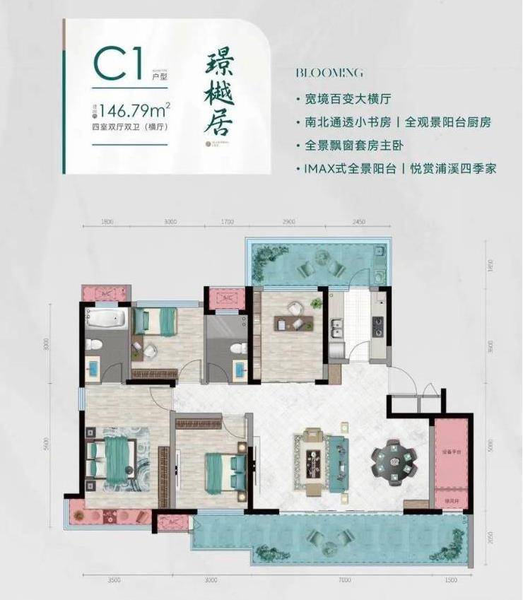 一个开阔的客厅空间不只是单一的会客场所,它还是灵活多变的生活天地,既能承载孩子的撒欢,也能增加与家人相聚的时光,增添生活乐趣。浦溪苑C1户型的阔境宽厅,近8.5米的采光面,大阔间的空间满足您一家人对美好生活的期盼,让幸福时光时刻到位。宽境客厅连接观景阳台,通透餐厅与厨房无缝相接,在这里妻子可以练习绘画,父母可以静看报纸,孩子们可以嬉戏追逐...舒阔的空间让一家人各享所爱。