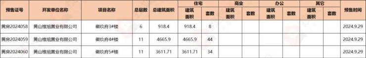 2024年9月,黄山中心城区中梁徽玖府1盘获预售证,新增可预售住宅房源86套。