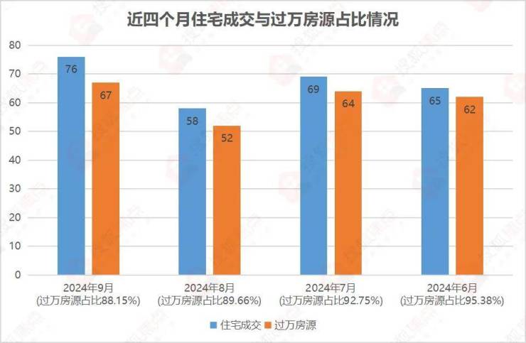 其中过万房源约67套,占比约88.15%