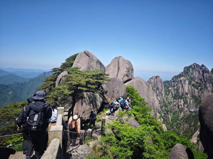 除此之外,天都峰上还有诸多象形奇石与奇松胜景,一步一景,移步换形。一松一石皆成趣,一云一雾总成诗。登临此处,既可挑战绝壁险径,又可尽揽黄山雄奇,天地壮阔尽在胸怀。