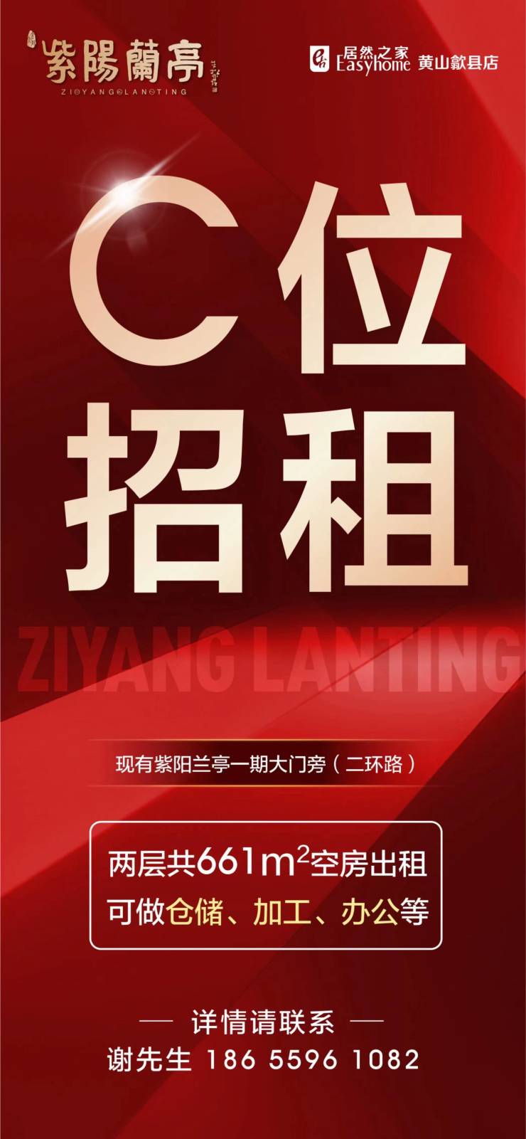 C位招租!紫阳兰亭一期大门旁(二环路),两层共计约661㎡空房超值出租,可做仓储、加工、办公等!紫阳兰亭由深耕黄山的实力企业金太阳集团和中国家居行业龙头——居然之家两大企业联手开发,精工品质,追求卓越!住宅3…