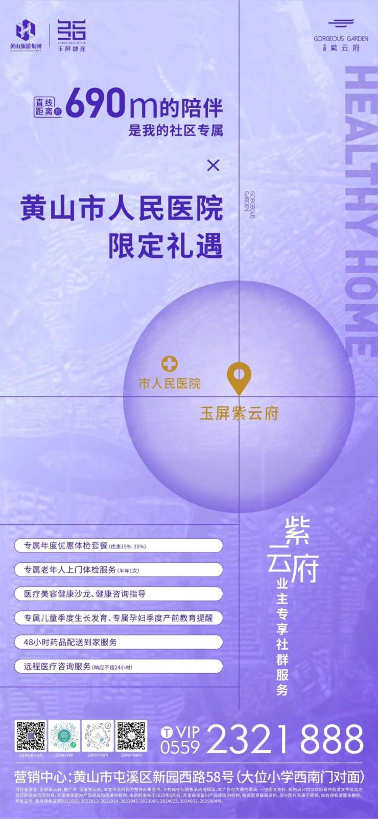 直线690m的陪伴,是我的社区专属。玉屏紫云府,黄山市人民医院限定礼遇,给你城芯想要的健康生活。