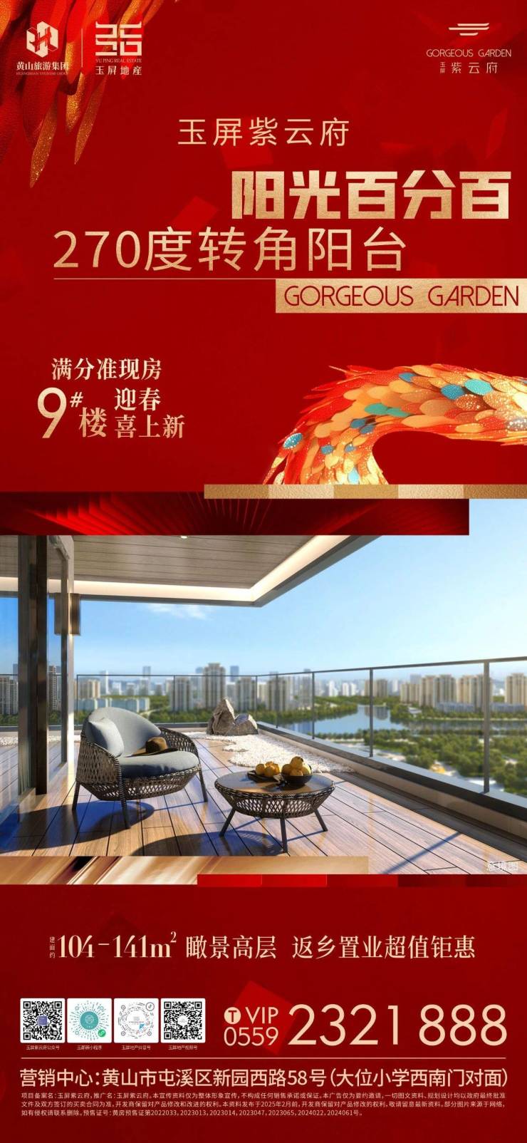 玉屏紫云府,阳光百分百,270度转角阳台,9#楼满分准现房喜上新,建面约104-141㎡瞰景高层,返乡置业超值钜惠。