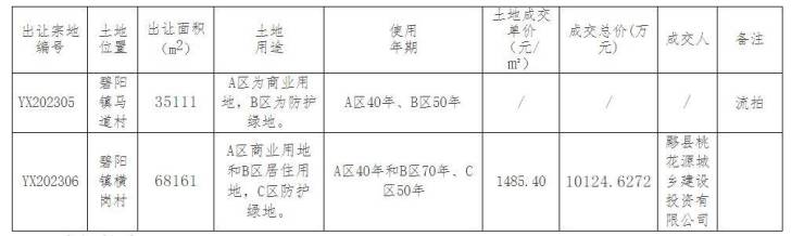 黟县碧阳镇1宗商住地底价成交,1宗商业地流拍