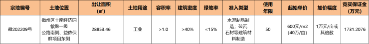 徽州区1宗工业用地挂牌,出让面积28853.46㎡