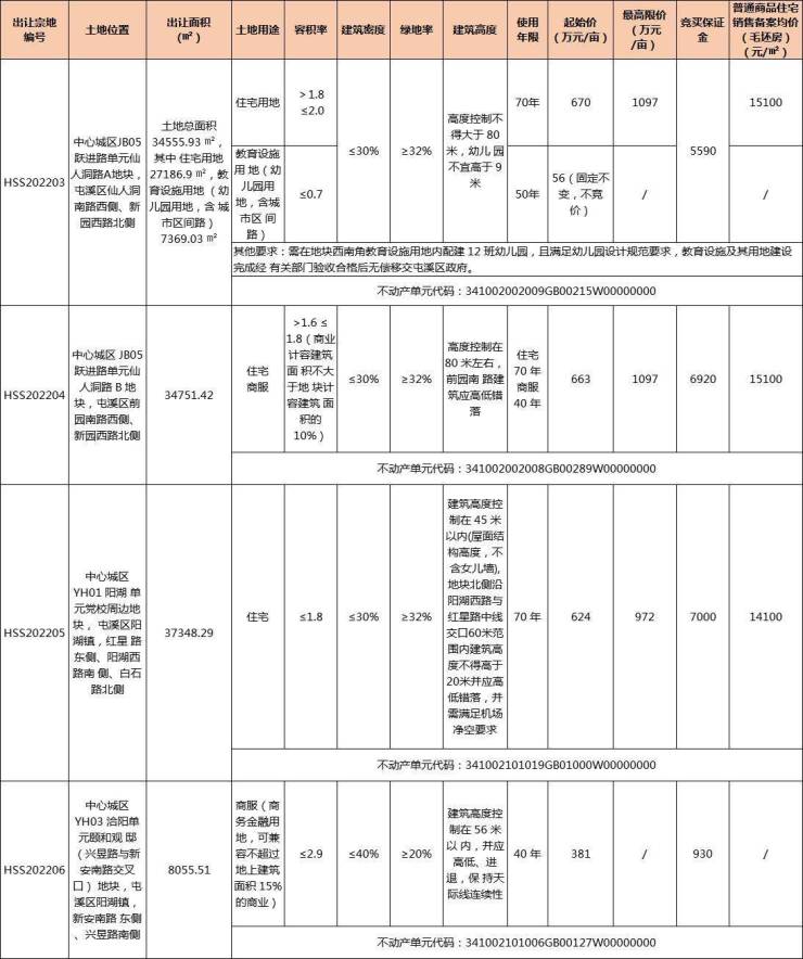 2022年10月17日,黄山中心城区4宗优质土地集中出让!分别为JB05跃进路单元仙人洞A地块(住宅、教育)、JB05跃进路单元仙人洞B地块(商住)、YH01阳湖单元党校周边地块(住宅)、YH03洽阳单元颐和观邸地块(商服)。其中,涉宅用地总出让面积106655.64㎡(159.98亩)。拍卖时间: 2022年11 月 16日15时30分。
