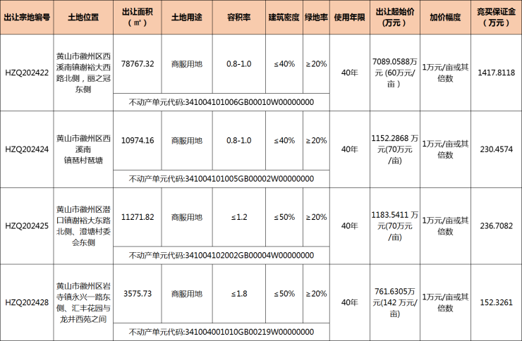 徽州区4宗商服用地挂牌,出让面积共计156.88亩