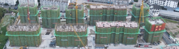 2021年8月8日,伴随着最后一方混凝土浇筑到位,锦绣问政园一期1#、2#、3#、4#、5#、6#、7#、8#、9#楼主体结构施工全部完成,全面封顶大吉!