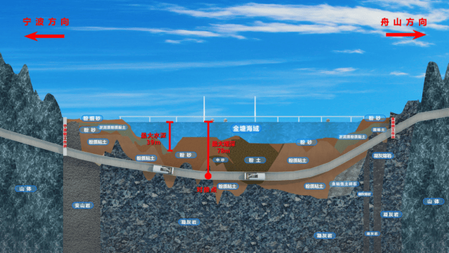 金塘海底隧道是甬舟铁路全线控制性工程,位于宁波与舟山之间金塘水道下方,西起宁波市北仑区,东至舟山市金塘镇,全长16.18公里,其中盾构段长11.21公里,是世界最长海底高铁隧道。