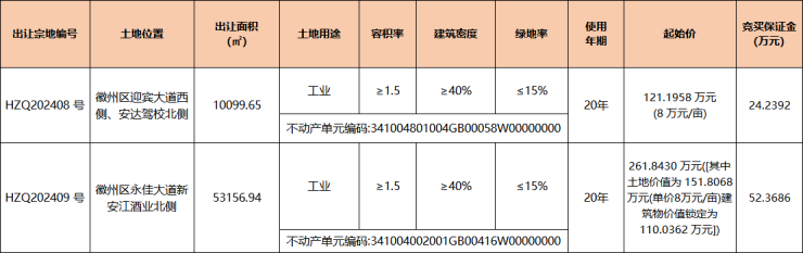 徽州区2宗工业用地挂牌