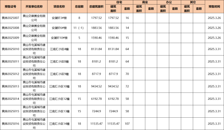 3月,黄山主城2盘获预售证,新增可预售住宅房源538套