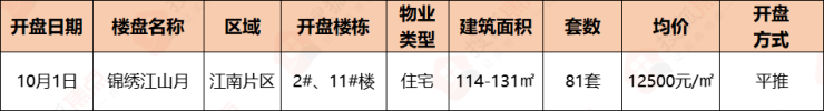 2023年10月,黄山中心城区锦绣江山月1盘加推,共计81套住宅房源。