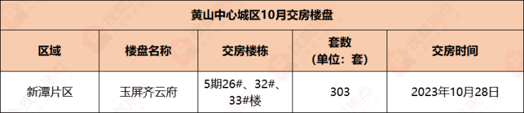 2023年10月,黄山中心城区玉屏齐云府1盘五期部分房源交付,共计303套住宅。