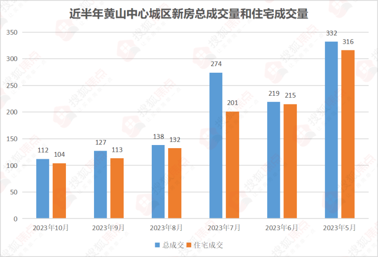 2023年10月黄山中心城区新房成交112套,环比9月的127套,下降11.81%;同比2022年10月的333套,下降66.37%。
