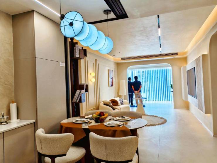 安澜轩J/K美学样板间开放首日便点燃全城热情!络绎不绝的到访者穿梭于光影交织的空间中,指尖触碰精工匠艺的温度,目光流转间皆是未来生活的诗意想象。孩子们在通透的客厅里追逐光影,情侣们细细推敲装修灵感,长辈们轻抚墙体肌理连连赞叹,人们纷纷驻足拍照,用镜头收藏着对未来家的心动瞬间。