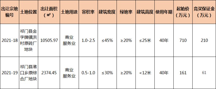 祁门县2宗商业服务业用地挂牌,出让面积合计12880.42㎡