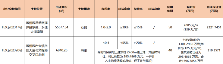 经黄山市徽州区人民政府批准,黄山市自然资源和规划局徽州分局委托黄山市公共资源交易中心以挂牌方式出让以下2(幅)地块的国有建设用地使用权。现将有关事项公告如下: